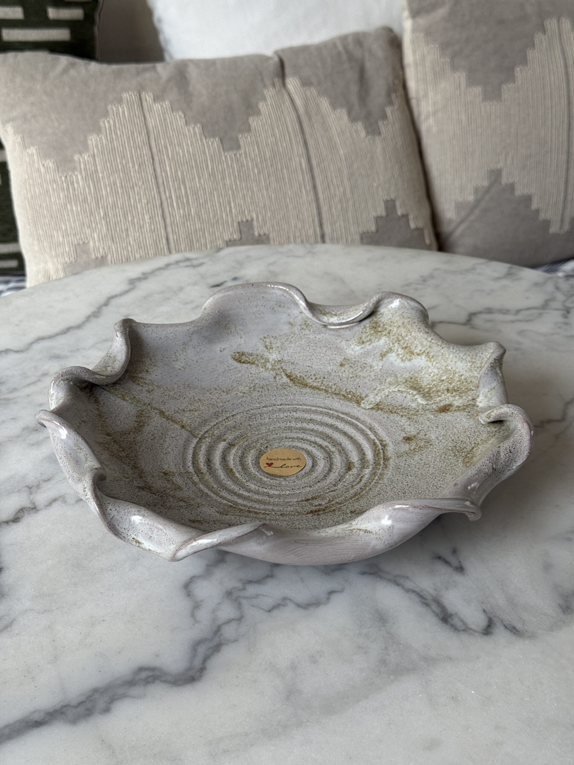 Mellem krøllet fad i råhvid med antik detaljer