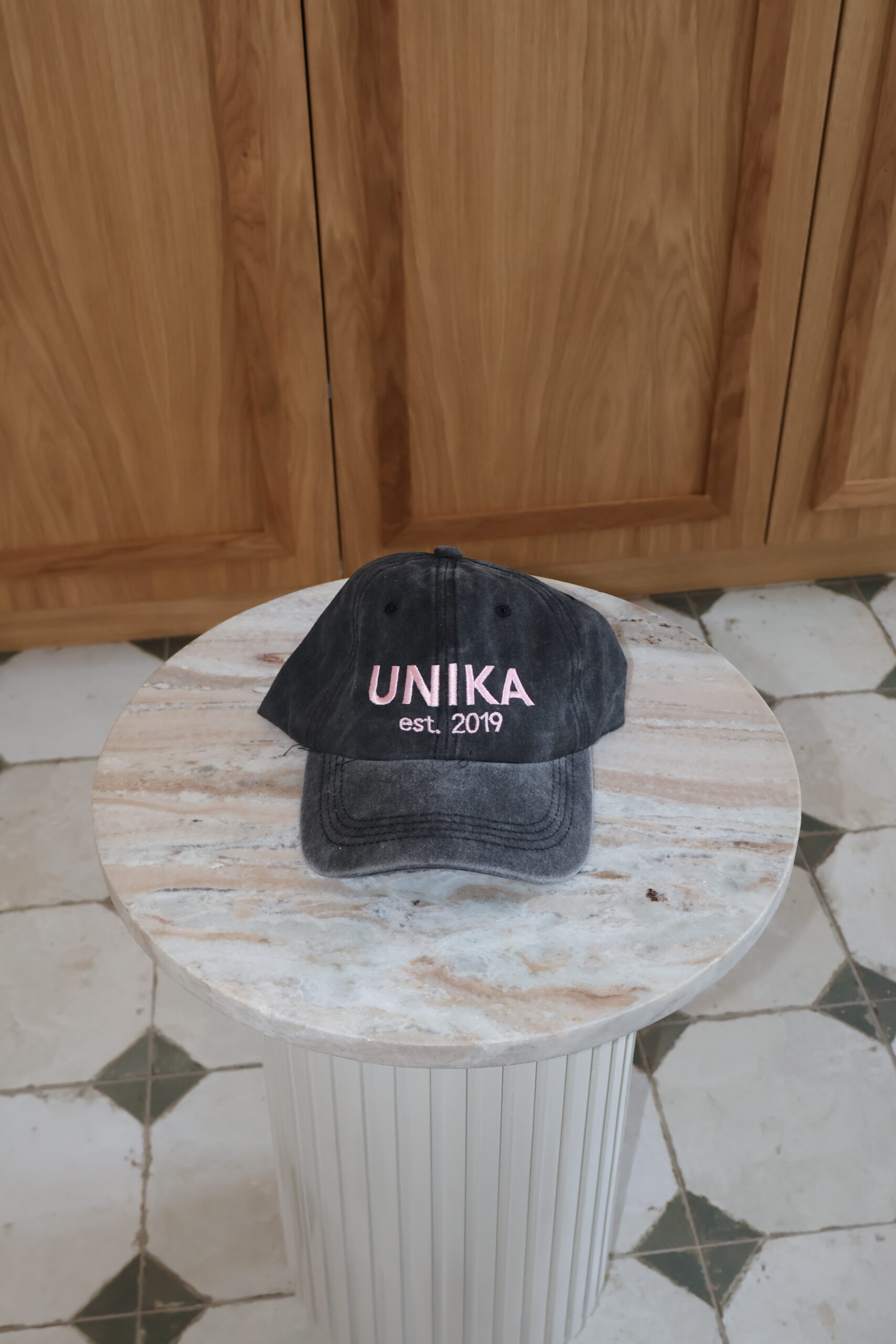 Sort cap med pink broderi antal